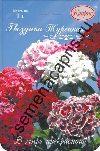 Гвоздика турецкая Каприс Артикул: 117032 27 Оформить заказ Высота 30-50см, диаметр цветков 1-2 см, простых и махровых. Зимостойка.Семена высевают в марте-апреле в открытый грунт или с 20 июля по 20 августа под зиму, на глубину 1-1,5см.
